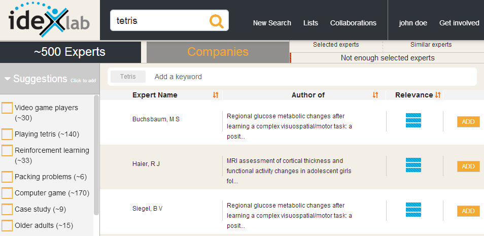 Find all papers and 500 experts on Tetris with www.idexlab.com